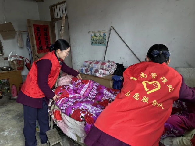 淮南處安豐站青年志愿者為留守老人打掃衛(wèi)生