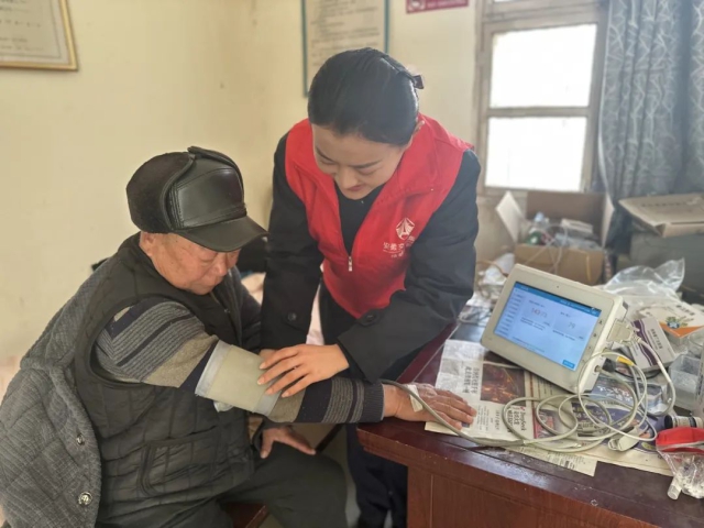 徐明公司漁溝站志愿者走進(jìn)附近社區(qū)衛(wèi)生院幫助老人測量血壓