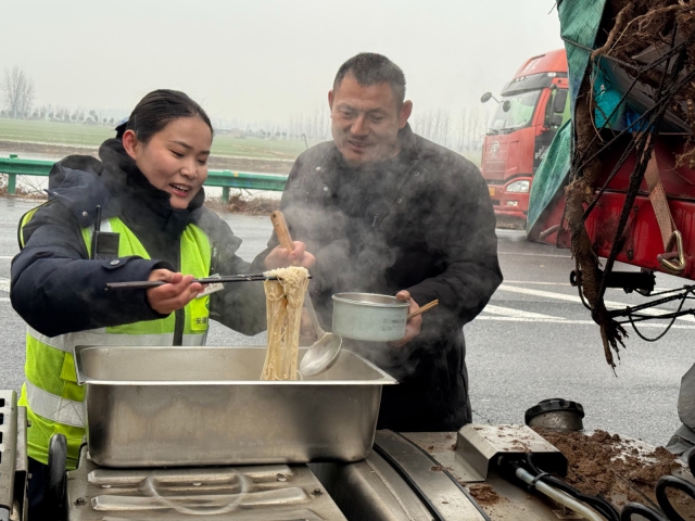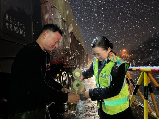 受降雪影響的收費站同步開展收費車道及廣場積雪清掃,確保站區(qū)通行順暢。與此同時,各收費站積極開展“暖冬行動”,為司乘人員提供熱水、姜茶、簡餐、手機(jī)充電及車牌除雪等貼心服務(wù),在寒冷雪天中傳遞“皖美高速”的溫暖與關(guān)懷。96566熱線服務(wù)中心增加話務(wù)坐席,及時回應(yīng)群眾訴求。各服務(wù)區(qū)、加油站強(qiáng)化現(xiàn)場管理和車輛疏導(dǎo),通過鋪設(shè)防滑墊、麻袋等落實防滑措施。