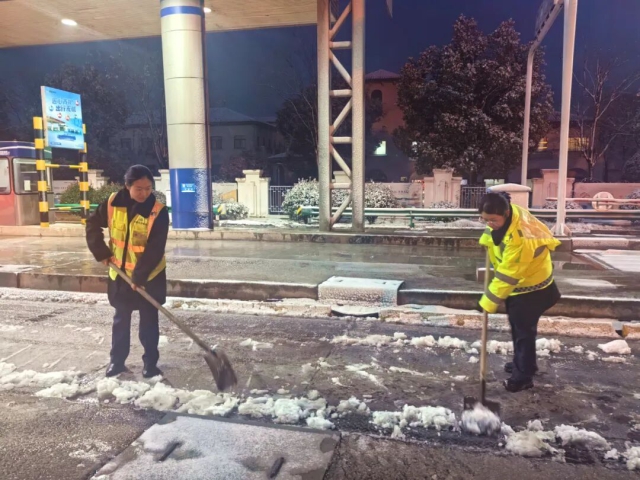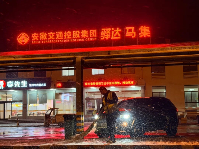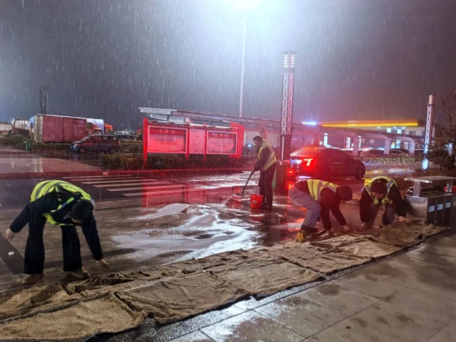 驛達(dá)集團(tuán)馬集服務(wù)區(qū)工作人員清理廣場積雪