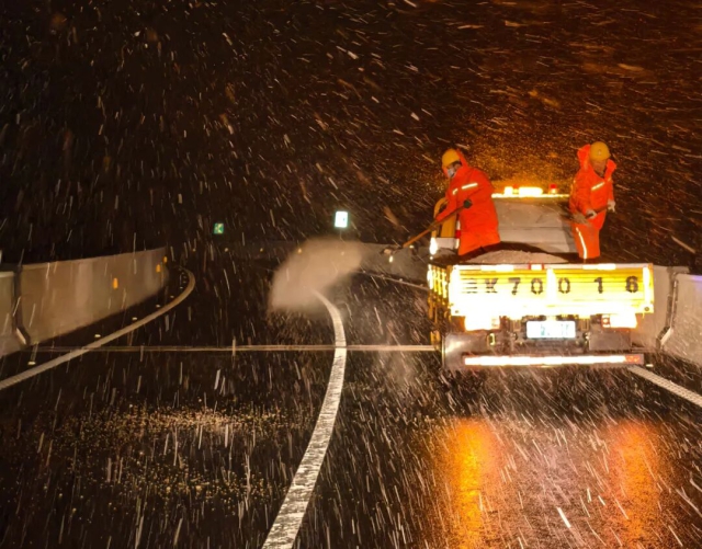 跨年之夜,我省京臺、滬陜、德上、合安等多條高速公路主干線相繼出現(xiàn)降雪。皖通公司和亳州、徐明、宿州、蚌埠、阜陽、合安、六安、淮南、高界、蕪湖等十余家管理中心以雪為令,啟動(dòng)低溫雨雪冰凍災(zāi)害應(yīng)急響應(yīng),徹夜鏖戰(zhàn),保障了路網(wǎng)運(yùn)行始終安全平穩(wěn)有序。截至1月1日上午8時(shí),集團(tuán)所轄路段積雪及時(shí)清除,未出現(xiàn)結(jié)冰現(xiàn)象,道路通行順暢。累計(jì)投入人員超1300人次、機(jī)械設(shè)備500余臺班,撒布融雪劑約1900噸。