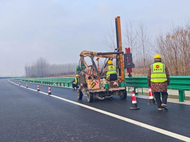 合徐南高速改擴(kuò)建項(xiàng)目工作人員開展交安護(hù)欄施工
