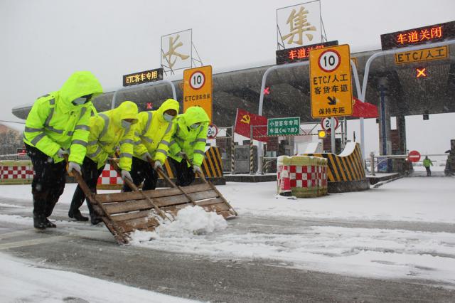 除雪過(guò)程中,各路段切實(shí)加強(qiáng)疫情防控管理,一方面繼續(xù)協(xié)同地方政府做好收費(fèi)道口、服務(wù)區(qū)的防疫檢測(cè)和體溫檢測(cè),另一方面加強(qiáng)內(nèi)部管理,逐一摸排參與除雪作業(yè)人員健康狀況,一律佩戴口罩、測(cè)量體溫,做好個(gè)人安全防護(hù)。